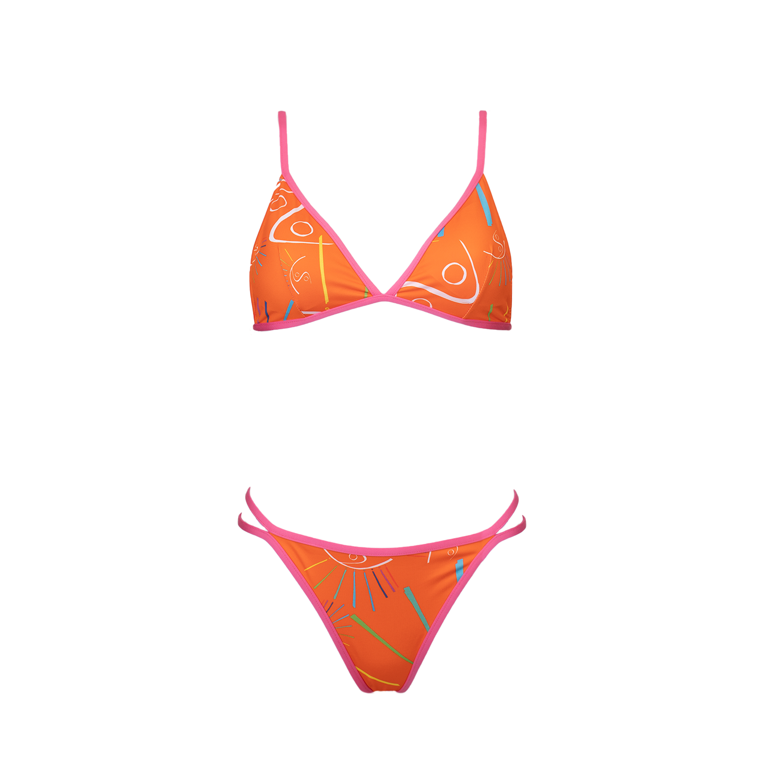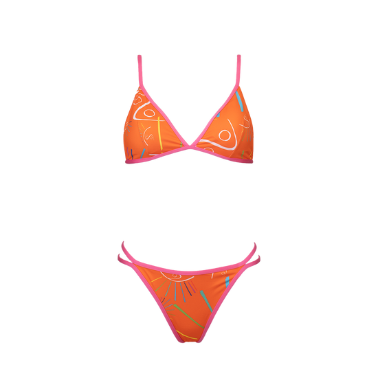 Un bikini à la coupe simple et élégante arbore le motif de vibrations sonores inspirées des musiques du groupe de musique Frost. La culotte avec de légères découpes sur les hanches apporte une touche de sensualité et de modernité.