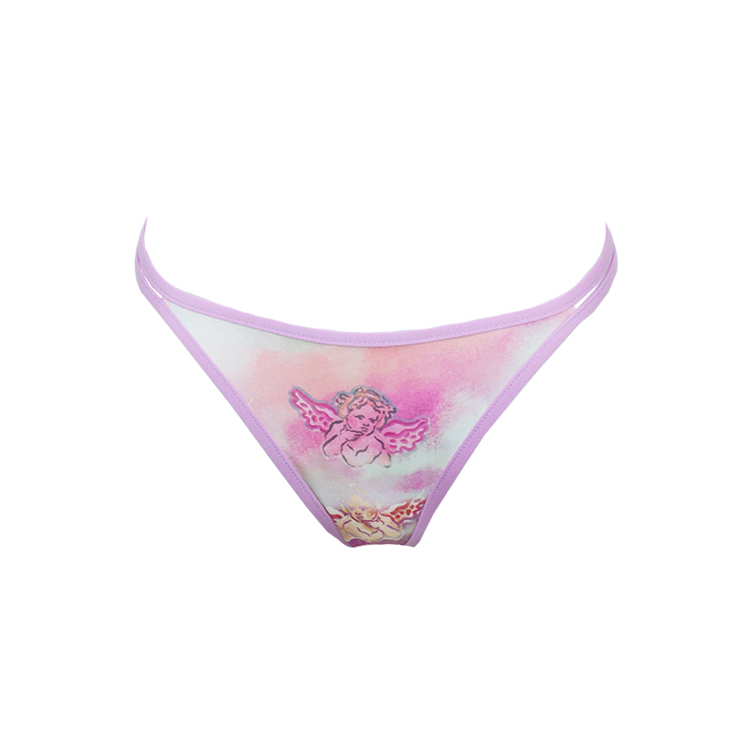 Ce bas de maillot de bain à la coupe culotte légèrement échancrée tire son originalité dans les couleurs pétillantes de l'aquarelle de l'artiste fuchsia. Sa double lanière sur les hanches offre un détail supplémentaire et mettra en valeur votre silhouette.