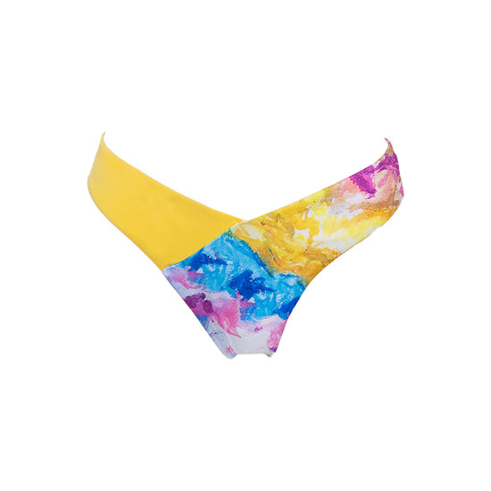 Le bas de ce maillot de bain adopte une coupe tanga, colorée et millimétrée pour mieux flatter votre silhouette. Ce maillot est réalisé en tissu stretch, sans coutures pour plus de confort, et habillé d'un motif multicolore inspiré de l'aquarelle Helio de l'artiste fuchsia, qui ressortira joliment contre votre peau.