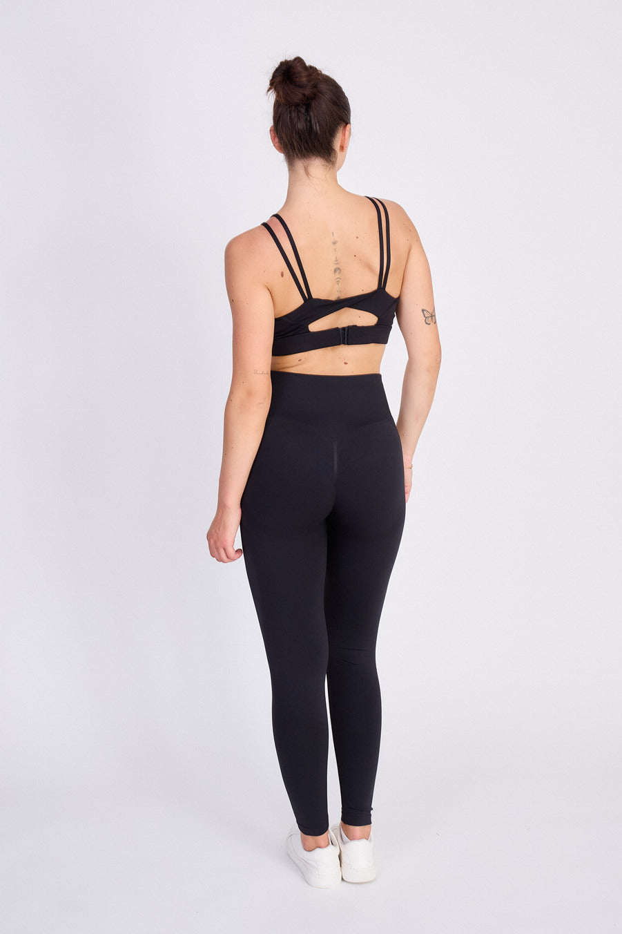 Conçue pour un impact moyen, cette brassière assure un maintien confortable grâce à sa bande élastiquée sous la poitrine. Elle est dotée d’empiècements sculptants à l’avant et à l’arrière, d’un rembourrage amovible, et de bretelles doubles pour une stabilité renforcée. Son dos croisé avec fermeture par crochets et œillets apporte à la fois soutien et esthétisme.