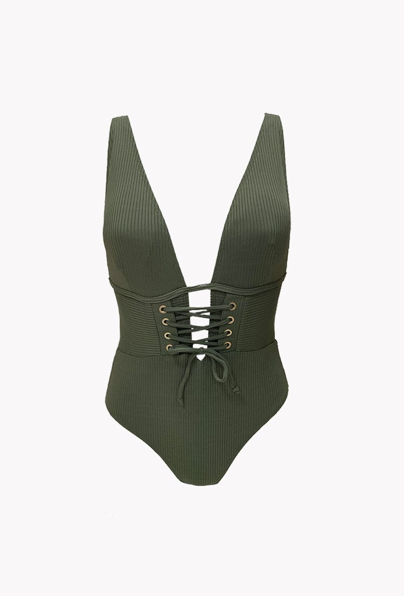 French chic - Stylist Maillot 1 Pièce décolleté plongeant à lacets
