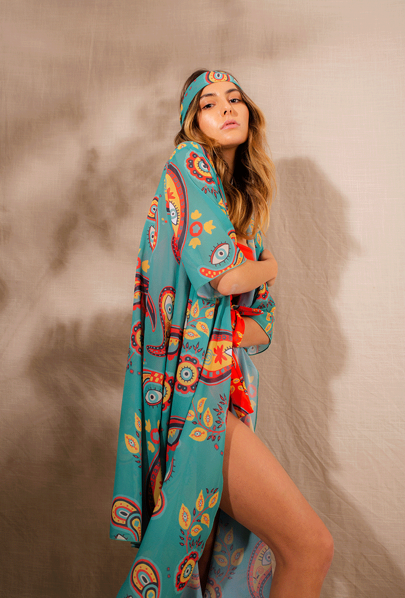 AULALA X MOON - TOURNESOL Kimono fluide à motifs